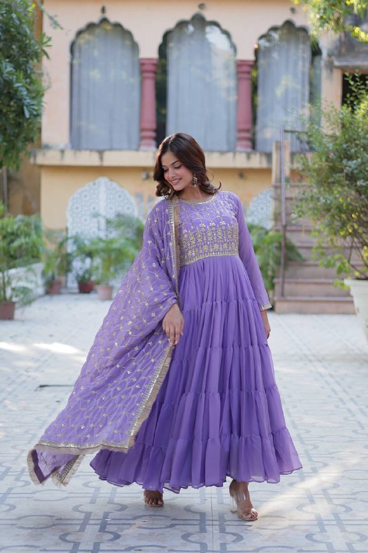 Orchid Star Georgette Fabrics And Designer Embroidered Dupatta Gown