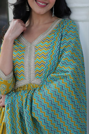 Green Pure Cotton Readymade Kurti With Pant Dupatta Set