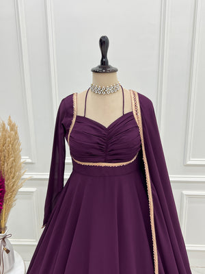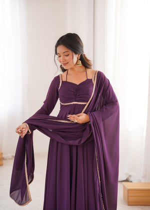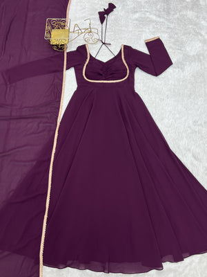 Wine Pure Fox Georgette Anarkali Gown with Dupatta | Ready-to-Wear Full Set