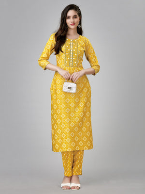 Yellow Color Fully Stiched Rayon Kurti and Pant