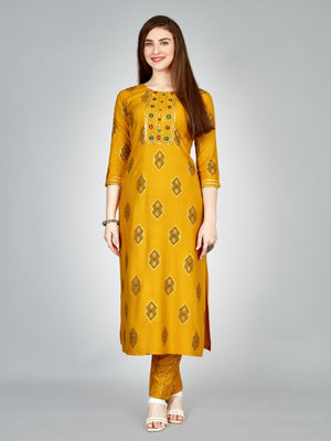 Yellow Color Heavy Rayon 14 Kgs With Embroidery Work Kurti and Pant