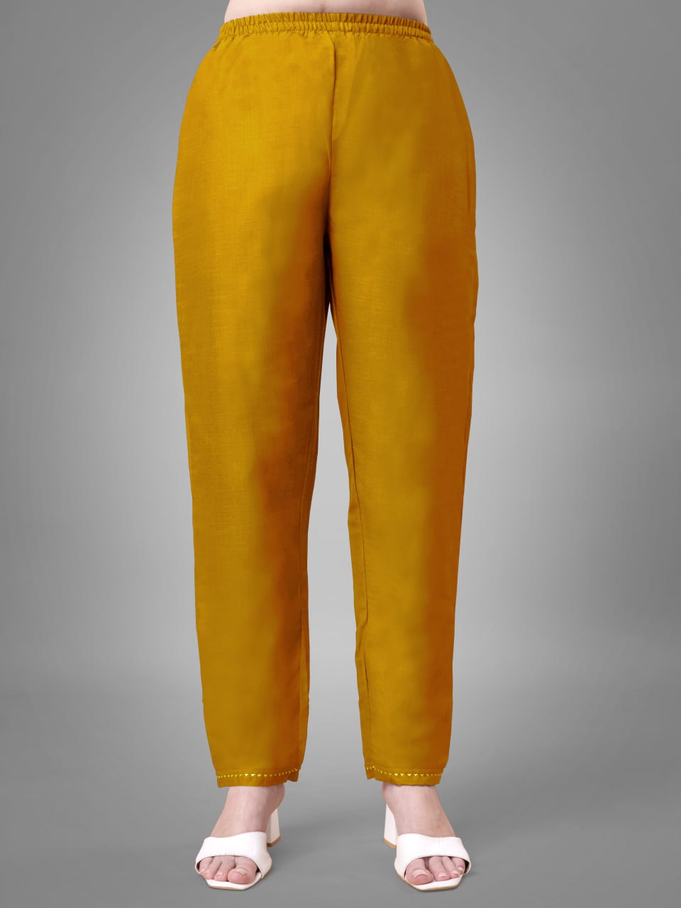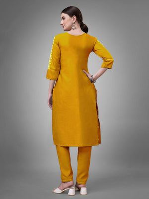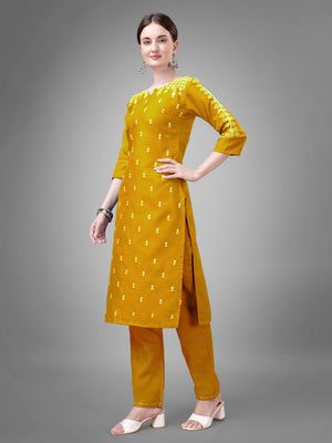 YELLOW Cotton Blend with Embroidery and Sequence Work Kurti Pant