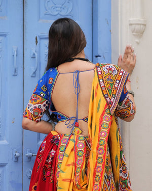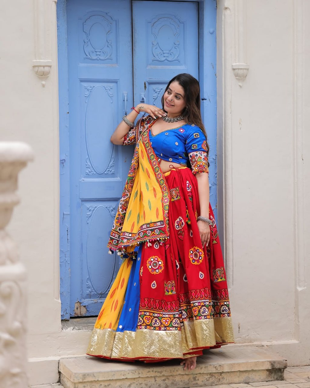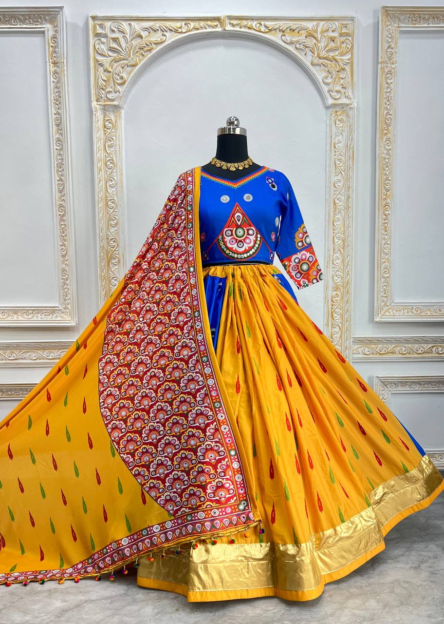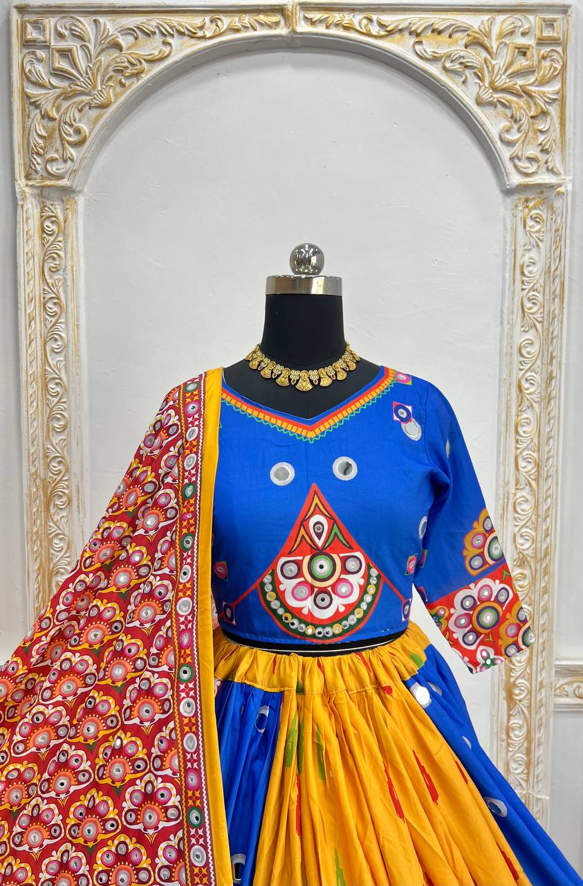 Blue Red Fancy Digital Print Real Mirror Work Navaratri Lehenga Choli