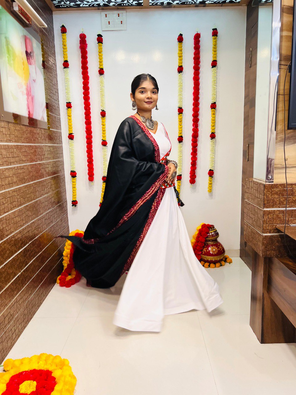 White Pure Cotton Silk Printed With Gamthi Work Butta Lace Work Navratri Lehenga Choli